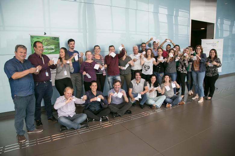 Diminuir uma, cinco ou cinquenta folhas de papel de um processo administrativo pode ser o primeiro passo para a transformação digital que trará ainda redução de tempo nas tarefas diárias, economia de recursos naturais, agilidade e visualização de resultados concretos. Inspirado nisso, o Projeto de Transformação Digital na SEA começou a capacitação dos servidores da Secretaria de Administração de Santa Catarina (SEA). Eles participaram da segunda oficina de Design Thinking com ênfase em Processos nos dias 10 e 11 de outubro, na Softplan. Entre dinâmicas em grupo, teatro e exposição de conteúdo pela Gabriela Tamura, do espaço de aprendizado em governo WeGov, e pelo Rafael Lessa, da Softplan, o grupo da SEA desenhou processos e os redesenhou pensando em como a tecnologia pode otimizar o tempo e diminuir os custos. Hoje os processos dos seis sistemas administrativos do Estado (Gestão Documental, Gestão de Materiais e Serviços, Gestão Patrimonial, Gestão de Recursos Humanos, Ouvidoria e Saúde do Servidor) correm paralelos em meio físico (processo impresso em papel, comunicados internos e ofícios) e no digital pelo sistema SGPe, desenvolvido pela Softplan, que faz a abertura e tramitação de processos administrativos.